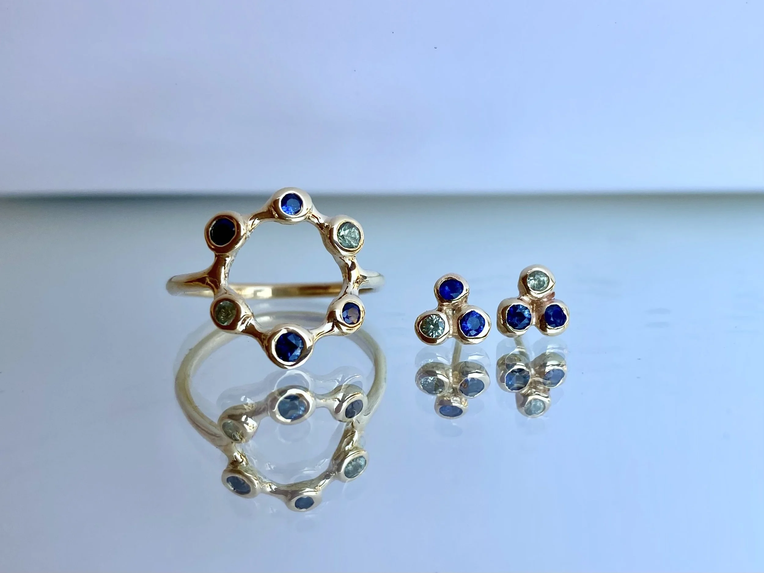 A circle of mixed blue and green sapphire bubbles for those days where your jewelry layers call for something serene and delicate!